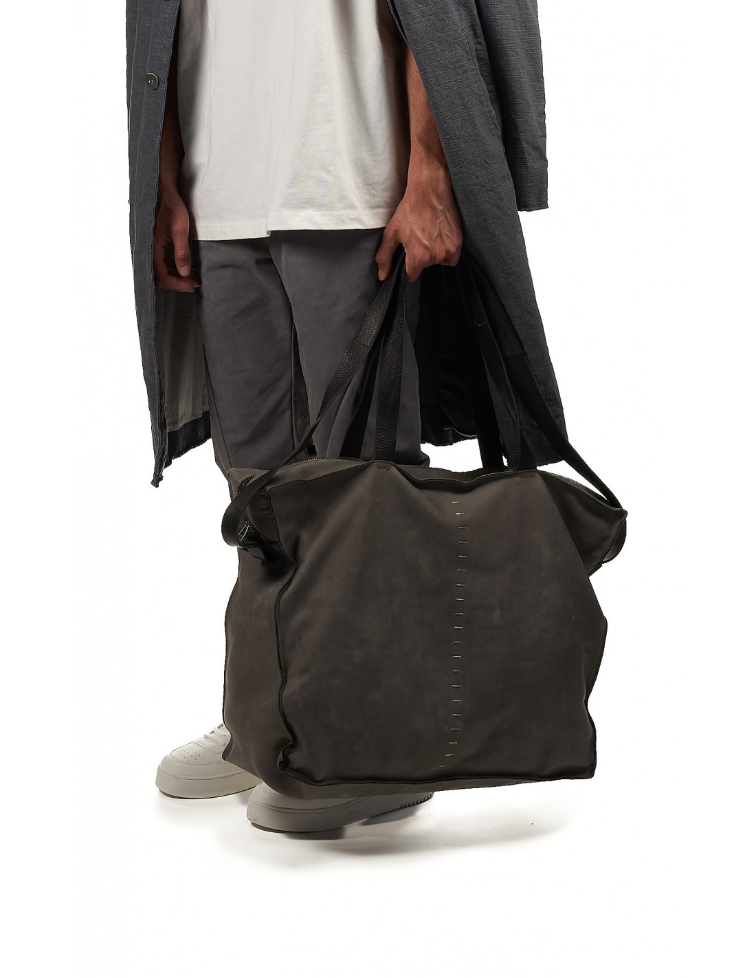 OVERSIZED CALFSKIN WAXED NUBUCK BAG WITH BULLSKIN DETAILS. IT FEATURES LEATHER HANDLES AND A NON-ADJUSTABLE, NON-REMOVABLE LEATHER SHOULDER STRAP, BOTH WITH NON-SLIP RUBBER UNDER THE CENTER FOR ADDED COMFORT. ELEGANT YET PRACTICAL, IS PERFECT FOR CARRYING EVERYTHING YOU NEED, WHEREVER YOUR DAY TAKES YOU. ESPECIALLY IDEAL FOR TRAVEL
